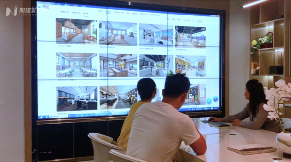 ▲業務人員在向客戶展示挑選產品在家居場景中的應用效果