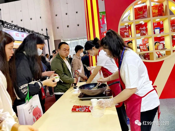 在紅九九品牌服務商-重慶貓頭鷹科技公司展區,工作人員現場展示并詳細說明具體操作流程,只需兩步就能享用地道重慶火鍋。省時、省事、省心、方便、快捷是它的優點;同時,紅99牌濃縮火鍋底料更是眾多家庭、餐廳、火鍋餐館、酒店選擇的方便型調味料,也是饋贈親友之佳品。希望可以將這份美味分享給全國乃至全世界的朋友們,即使在他鄉也能吃到正宗的重慶火鍋。