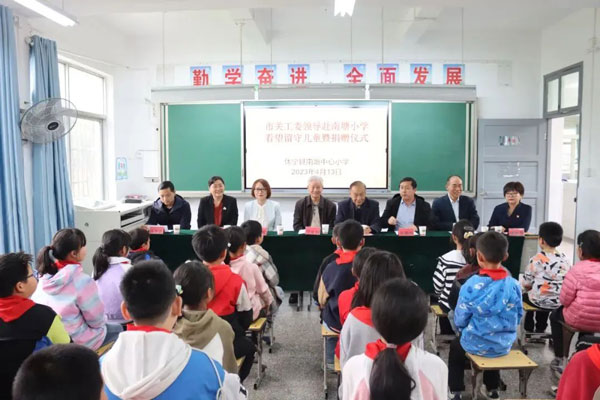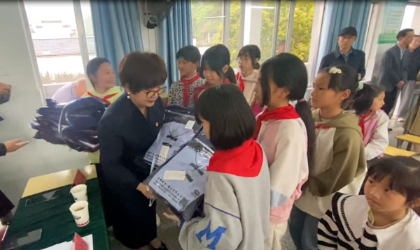 為積極響應(yīng)市關(guān)工委關(guān)心下一代工作的號召,4月13日下午,安徽永峰制衣有限公司總經(jīng)理葉建萍參加了由市關(guān)工委牽頭組織黃山日報(bào)社、市婦聯(lián)、休寧縣關(guān)工委等多個(gè)部門參加的看望休寧縣南塘小學(xué)留守兒童和捐贈校服活動。