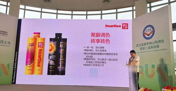 與此同時,在產品介紹的宣講臺上,皇氏工匠也帶著引以為豪的美縫特色產品上臺,與更多的人分享最新的研究成果,展現皇氏工匠美縫未來發展方向。