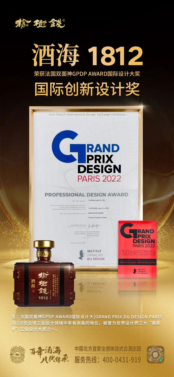 《榆樹錢酒海1812》,成功通過最終評審榮獲法國雙面神GPDP AWARD國際設(shè)計大獎-國際創(chuàng)新設(shè)計獎!