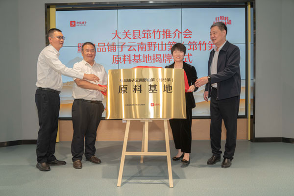 4月26日,中國食品工業協會副秘書長徐堅,中共大關縣委常委、縣人民政府常務副縣長張興,云南省農業科學院農產品加工研究所副所長蘇火生,良品鋪子股份有限公司副總裁、供應鏈中心負責人劉玲出席“良品鋪子云南野山筍(筇竹筍)原料基地”揭牌儀式。