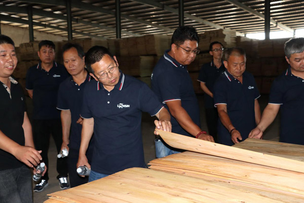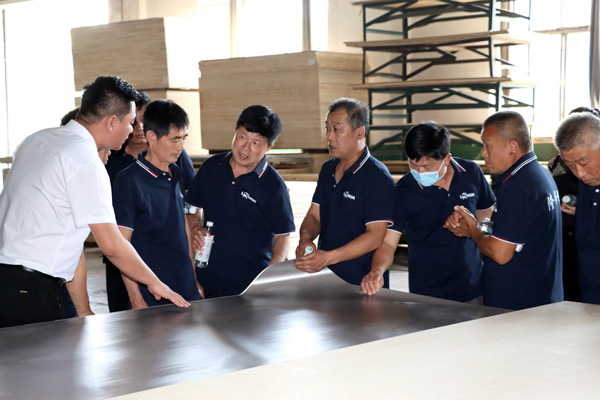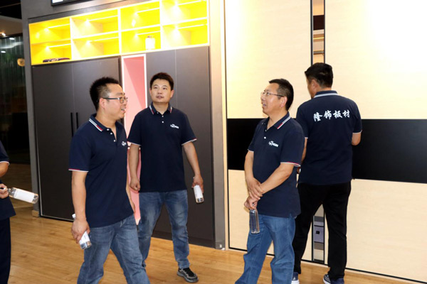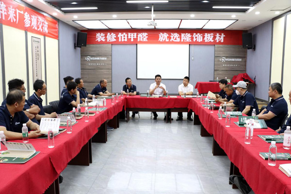 為增進經銷商對公司的了解,更好地發展合作關系,6月8日上午,隆飾板材山東濟南代理商周洪國周總組織當地裝修公司、木工團體、家具加工廠等合作伙伴一行,蒞臨隆飾板材總部進行了參觀交流,通過近距離的實地參觀,深入了解隆飾板材的生產工藝流程。