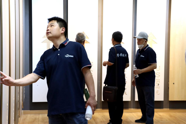 在隆飾精品展廳中,大家興趣十足,依次欣賞著不同系列板材產品所打造的定制家具效果,讓大家更直觀地了解隆飾板材,增加經營信心,讓經銷商對隆飾產品更加具有信心!