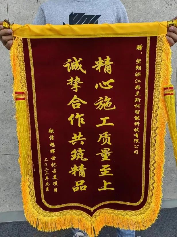梧葉新黃柿葉紅,更兼烏桕與丹楓,在九月滿城桂花初香的時節,堅朗格蘭斯柯新風收到了來自上海融信旭輝世紀古美項目部的錦旗,這是對格蘭斯柯新風在克服疫情影響下按時、保質完成超低能耗新風系統供貨及施工任務的充分肯定。