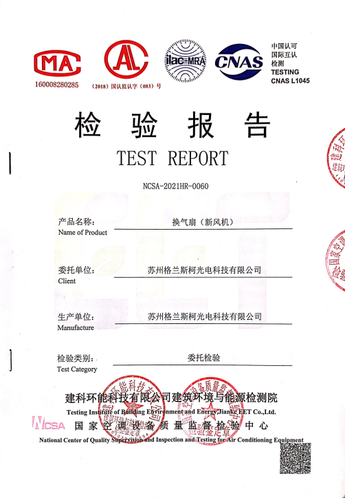 格蘭斯柯新風事業部在從堅朗上海銷售區了解到世紀古美項目的超低能耗項目需求后,便立即成立專門上海被動房項目組,利用公司多年深耕新風領域的研發技術積累,在不到五個月的時間里,研發設計出滿足世紀古美項目技術要求的設備并完成第三方測試,取得滿足項目要求的第三方測試報告。