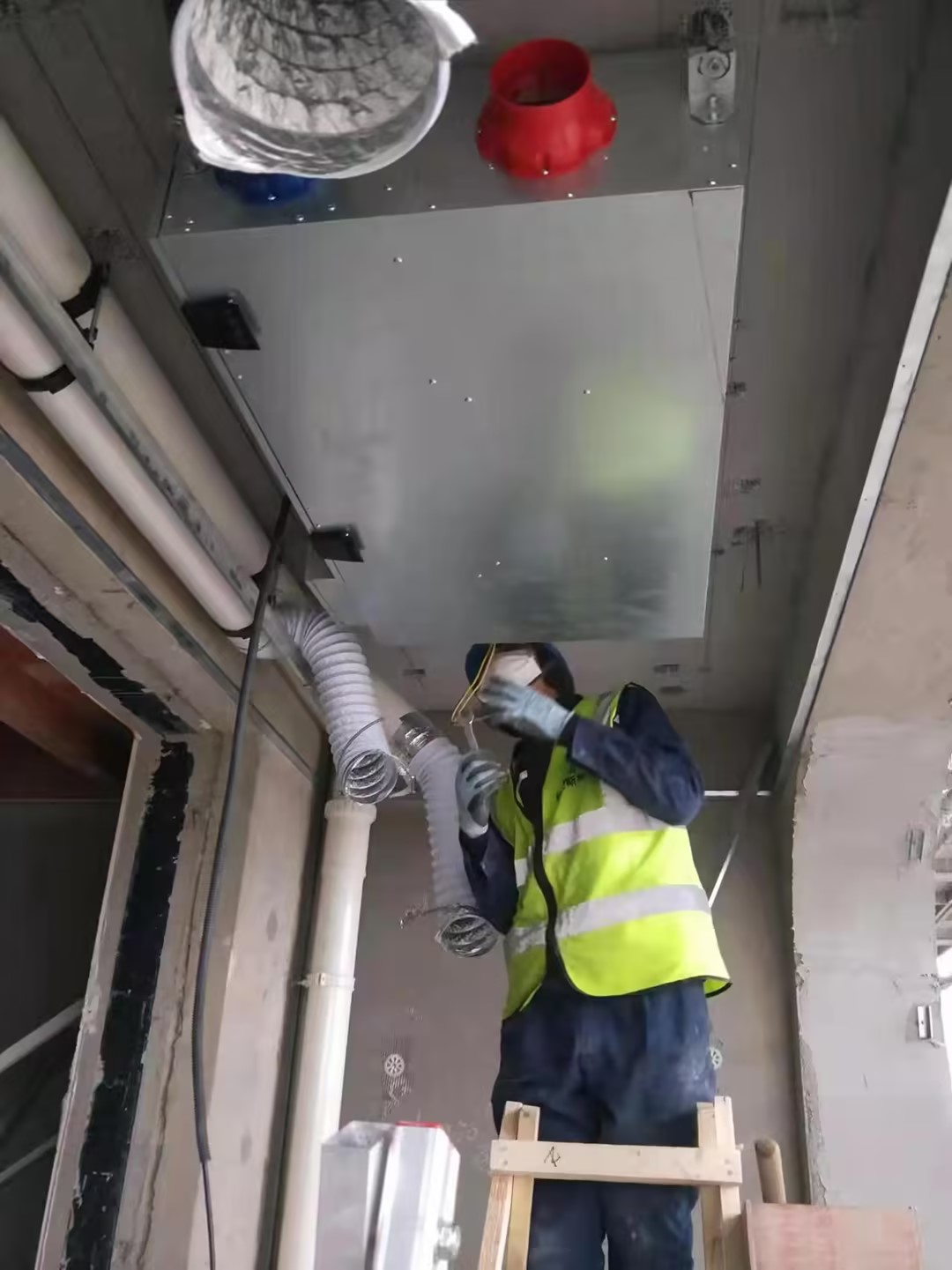 自2021年12月工程進場施工至2023年3月調試完成第三方驗收通過,整個項目工期歷時15個月。在堅朗上海銷售區的大力支持下,格蘭斯柯新風安裝團隊與世紀古美項目部緊密配合,精心策劃組織、科學安排施工。