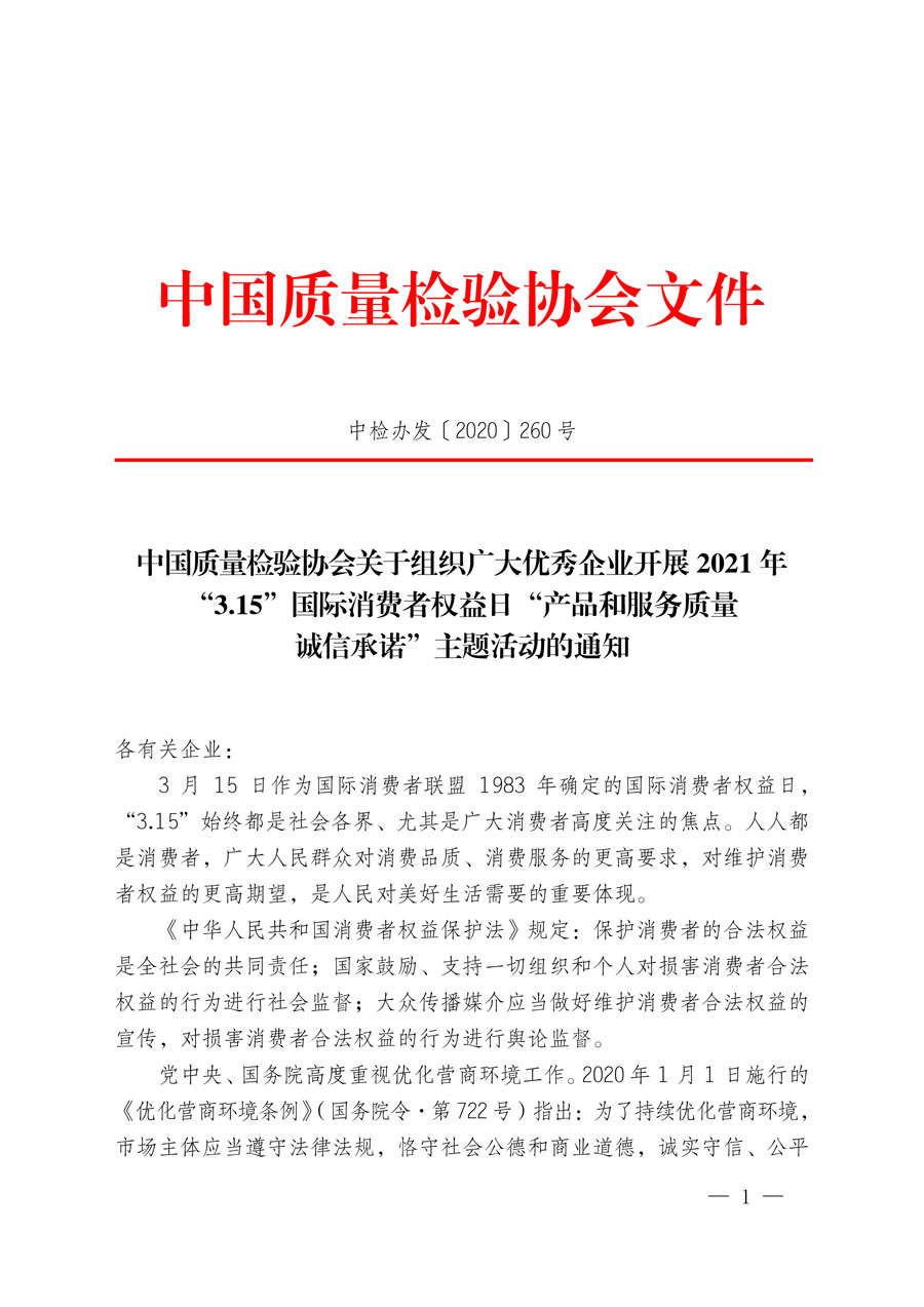 中國(guó)質(zhì)量檢驗(yàn)協(xié)會(huì)關(guān)于組織廣大優(yōu)秀企業(yè)開(kāi)展2021年