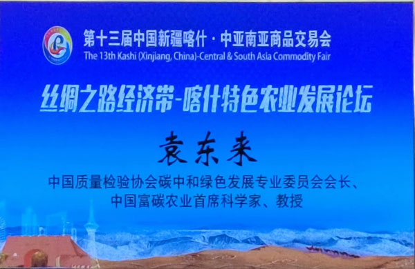 2023年6月22日,第十三屆中國(guó)新疆喀什中亞南亞商品交易會(huì)主題活動(dòng)“絲綢之路經(jīng)濟(jì)帶——喀什特色農(nóng)業(yè)發(fā)展論壇”在喀什市喀什賓館召開(kāi)。中國(guó)質(zhì)量檢驗(yàn)協(xié)會(huì)碳中和綠色發(fā)展專(zhuān)業(yè)委員會(huì)會(huì)長(zhǎng)、中國(guó)富碳農(nóng)業(yè)首席科學(xué)家袁東來(lái)教授應(yīng)邀在論壇上發(fā)表了以《美麗喀什 “碳”索未來(lái)》為主題的演講。