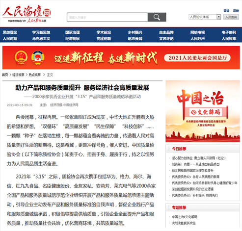 人民網:2000家質量領先企業開展 "3.15"產品和服務質量誠信承諾活動