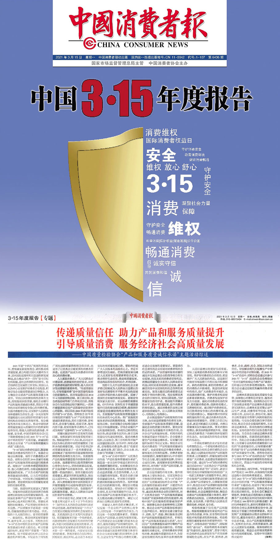 中國消費者報(3月15日刊第4版):傳遞質量信任 助力產品和服務質量提升 引導質量消費 服務經濟社會高質量發展——中國質量檢驗協會組織開展2021年“3.15”國際消費者權益日“產品和服務質量誠信承諾”主題活動綜述