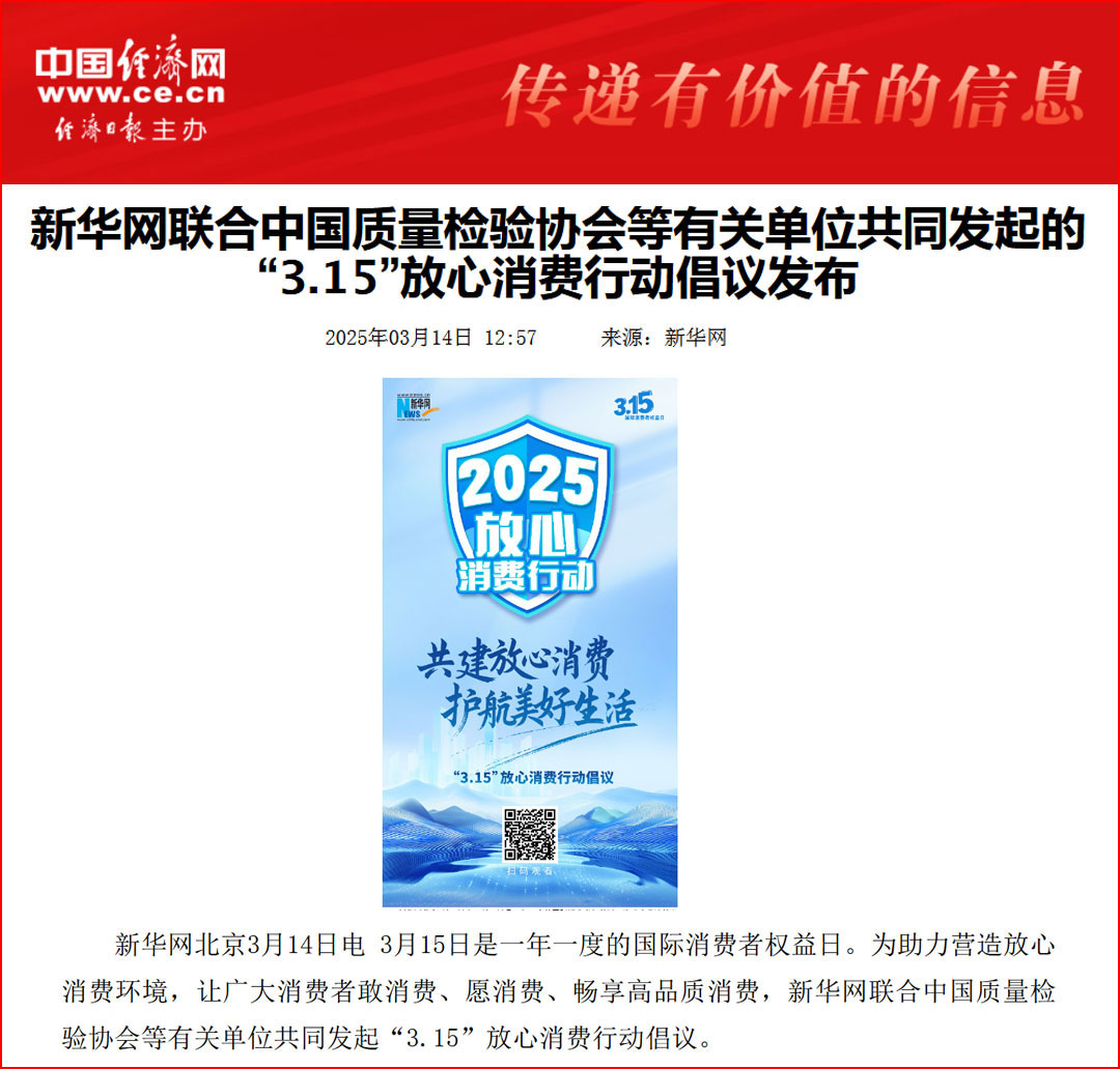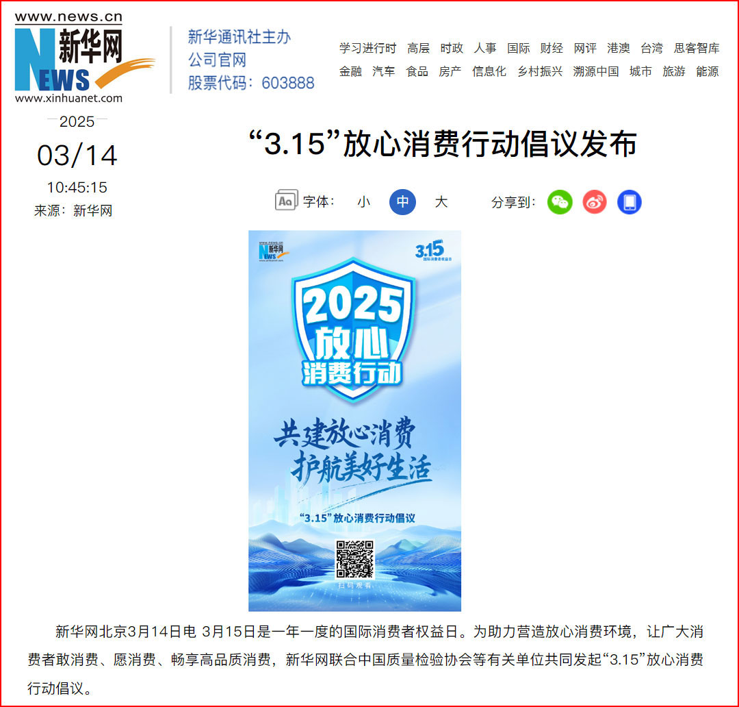 新華網聯合中國質量檢驗協會等有關單位共同發起的“3.15”放心消費行動倡議發布