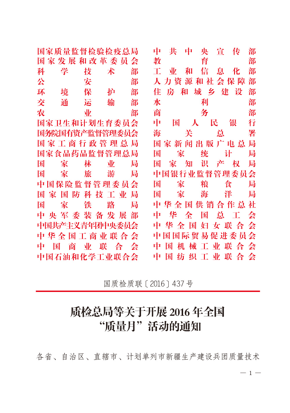 2016年8月15日,國家質檢總局、中共中央宣傳部、國家發改委、科學技術部、工業和信息化部、公安部、農業部、商務部、國務院國資委、國家工商總局、國家食藥監總局、國家知識產權局、中國貿促會等42個單位(部門)聯合印發的《質檢總局等關于開展2016年全國“質量月”活動的通知》(國質檢質聯〔2016〕437號)就曾重點安排部署:中國質量檢驗協會繼續組織開展“企業質量誠信倡議”專題活動,組織開展質量誠信溯源和防偽標識應用服務專項推廣活動,傳遞質檢信任,引導質量消費,助力“中國制造”品牌提升。