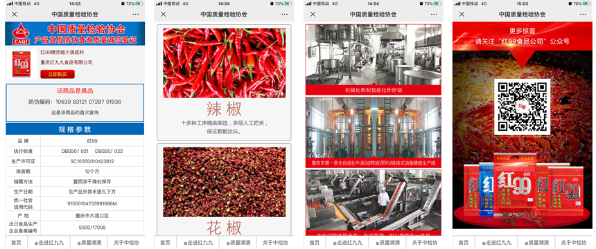 中國質量檢驗協會作為質量檢驗行業組織和質量專業社團機構,為充分發揮在質量行政主管部門、名優企業、消費者之間的橋梁和紐帶作用,向廣大消費者提供權威可靠的質量信息和消費信息,切實維護廣大名優產品生產(經銷)企業的合法權益,在2000年開始組建了具有獨立知識產權并集信息編碼技術、數據庫技術、網絡通訊技術、密碼學技術、計算機語音處理技術、移動通訊技術于一體的中國質量檢驗協會數碼防偽和物流管理服務系統,并充分運用大數據先進理念、技術和資源,通過自主研發和技術協作逐步完善了產品溯源管理和數碼防偽查詢與物流管理等多功能服務相結合的技術創新,形成了產品溯源管理和數碼防偽與物流管理于一體的中國質量檢驗協會防偽溯源和物流管理服務系統,為廣大名優產品生產(銷售)企業實現產品溯源、物流防竄貨管理和防偽打假及消費者放心購物提供二維碼掃描、網絡在線查詢、手機短信查詢、電話查詢的切實服務和大數據運用、與消費者互動分享及有價值交互的輿論傳播等多功能于一體的互聯網+超值服務。中國質量檢驗協會防偽溯源和物流管理服務系統自研發、組建并正式運行以來,不斷完善自身技術,改進服務功能,為廣大名優產品生產(銷售)入網企業提供了切實有效的服務工作,得到了廣大企業對其系統技術和服務的充分認可與肯定,在傳遞質檢信任、引導質量消費、督導企業實施以質取勝戰略和增強質量安全主體責任意識、推動質量社會共治共享、共筑質量誠信、引導廣大消費者樹立質量消費觀念、切實維護消費者合法權益等方面取得了廣泛的社會影響。