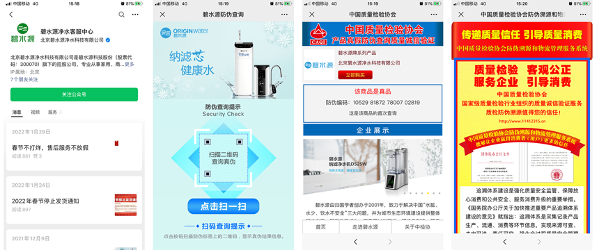 應用說明:多重防偽技術標識的二維碼經過了多重校驗和加密,確保了其唯一性和安全性,二維碼采用企業公眾號與可變加密信息相結合的方式,掃描二維碼時首先引導消費者關注企業公眾號,方便企業收集消費信息并對企業公眾號進行引流,既可有效解決企業產品防偽驗證的需求,也能加大消費者對企業品牌的消費信任度。